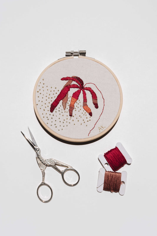 Women throughout history have used embroidery as a powerful form of creative expression. For many, needlework became a lifeline, a way to explore their creativity in a time when artistic outlets were limited. My embroidery art draws from this rich tradition, merging the meditative process of needle and thread with contemporary design and creative exploration. Each piece is a reflection of modern themes while honouring the time-honoured craft of embroidery. Explore my collection of hand-stitched, modern embroidery art pieces below.